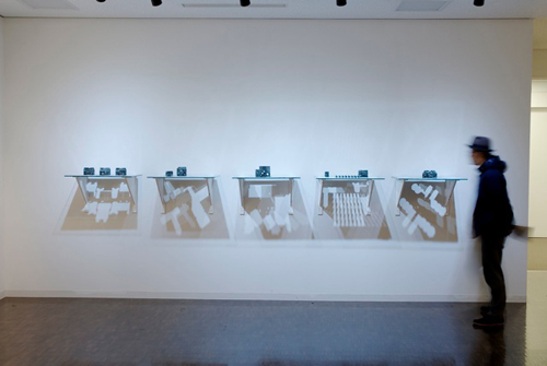 Hideki Kimura, installation view of an exhibition in Kyoto in 2013. Five works exhibited are from the series "Charcoal.."