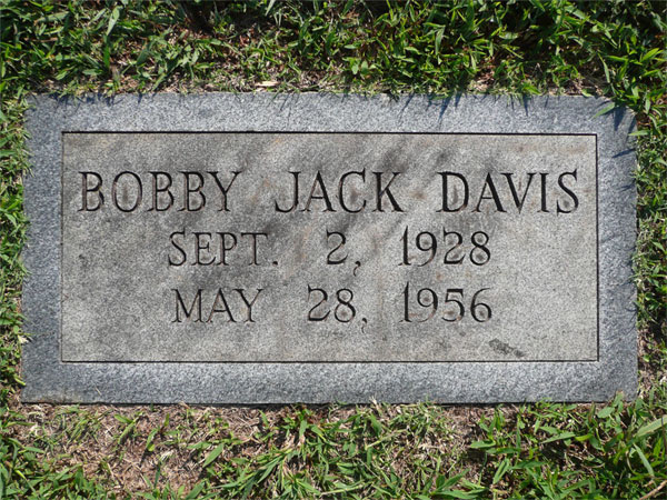 Bobby Jack Davis was one of twelve children. Bobby (Flat Nose) was known around Comer’s as a very good pool player. One of his sisters, Bess, ran a brothel on McCalla Avenue in Knoxville for many years. On May 28, 1956, Bobby Davis, a 27-year-old unemployed married man, was killed with a 16-guage shotgun in Happy Hollow, a very rough section along North Central. He was shot in the chest in what police termed a “gangland type” murder on the lawn of the Emerald Avenue Methodist Church in a drive-by shooting by his friend and drinking companion, (William) Earl Turner, after a weekend of heavy drinking. Bobby is buried in Highland Memorial Cemetery.