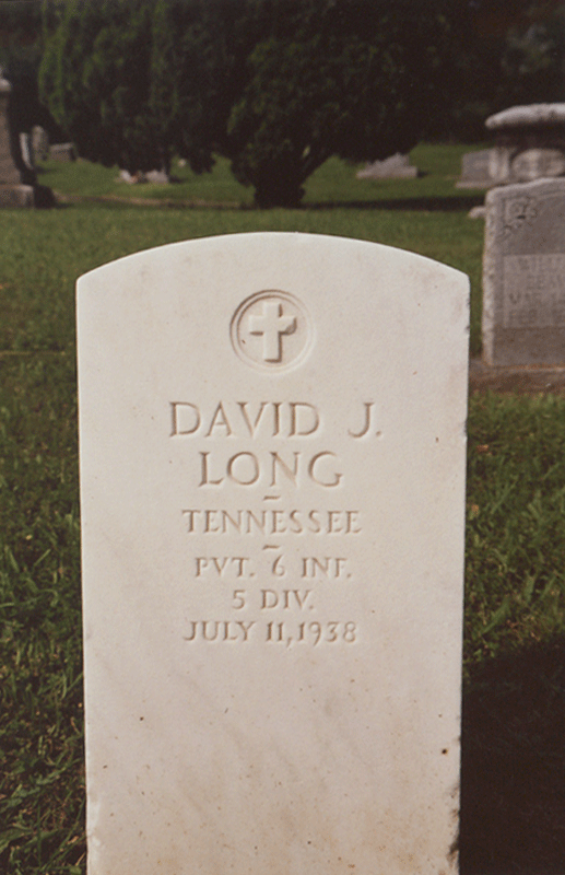David J. Long was born in Tennessee on October 17, 1890, and died at home on July 11, 1938, at age 47 after a long illness. His father, James Long, was born in Ireland and his mother, Joana Fitzgerald, was born in Virginia of parents who had been born in Ireland. He married Bertha Estella Dossett on August 26, 1930, and owned Long’s Grocery Store located at 904 Ft. Sanders between Dale Avenue and Curton Alley. He started in the grocery business in 1929 about the time of the great depression. He married Bertha Estella Dossett on August 26, 1930, and by 1933 had expanded his business to five grocery stores several of which were located in McAnally. He was survived by his wife Estella and four children: James W., David (Joe) Jr., and two daughters. He is buried in Calvary Cemetery.