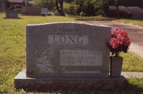 Bertha Estella Dossett Long was the widow of David Long. She was born on November 14, 1908, married David J. Long on August 26, 1930, and died on February 1, 1994. She worked as a clerk, receptionist and bookkeeper for West Knoxville Plumbing and Heating Co. during the period from 1951 to 1968. The plumbing company was located at 1514 Grand Avenue just a few doors down the street from where she lived with her family. She continued to live at the family home at 1504 Grand Avenue until 1966. The family then moved to 3906 Windsor Avenue. She was survived by all of her four children: James W. and David J. Long, Jr., and two married daughters. She is buried in Calvary Cemetery.