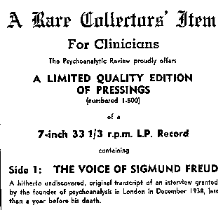 The following advertisment appeared in a 1964 issue of The Psychoanalytic Review :