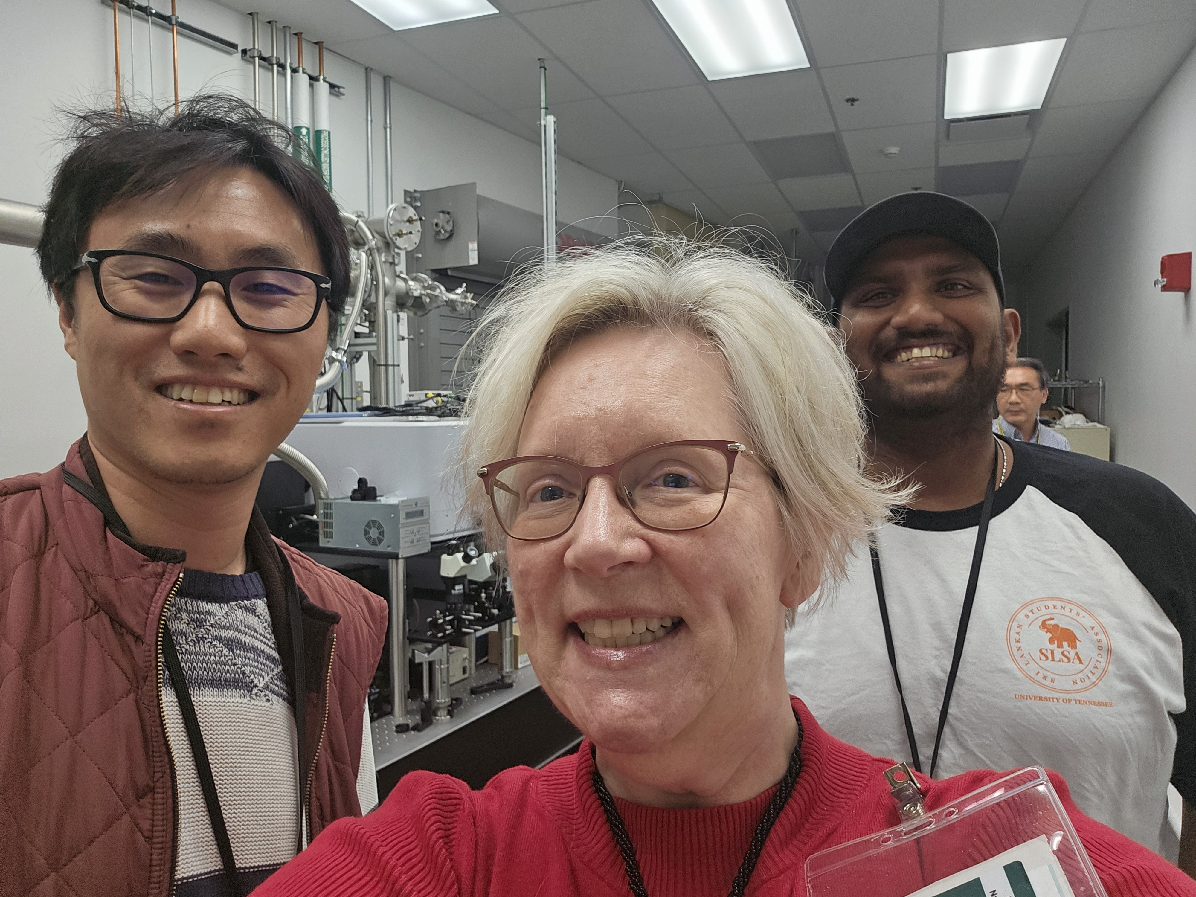 Avery shows Jun Hee Lee and his team (Ulsan) how we interface the cryostat to our infrared microscope. They spent a sabbatical year in Knoxville.