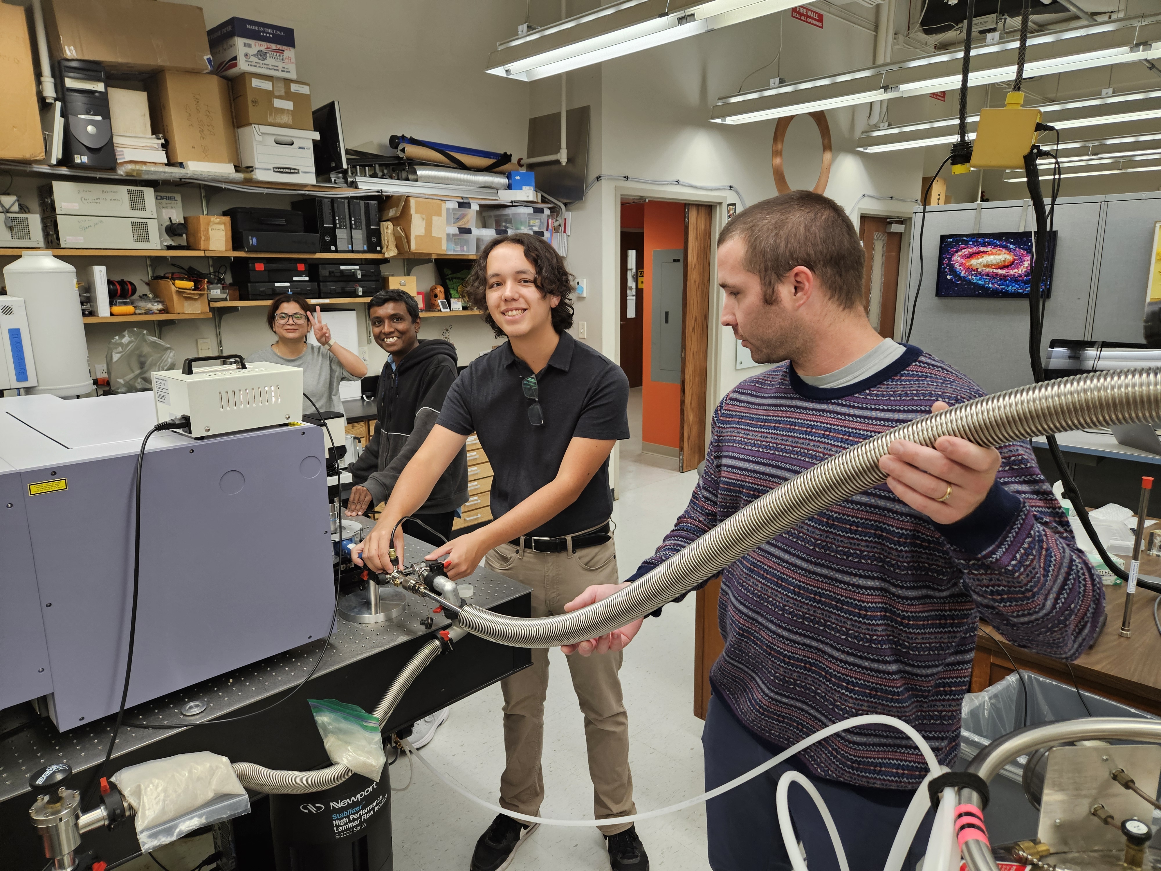 Avery enjoys teaching Raman scattering spectroscopy to the advanced physical chemistry lab students.