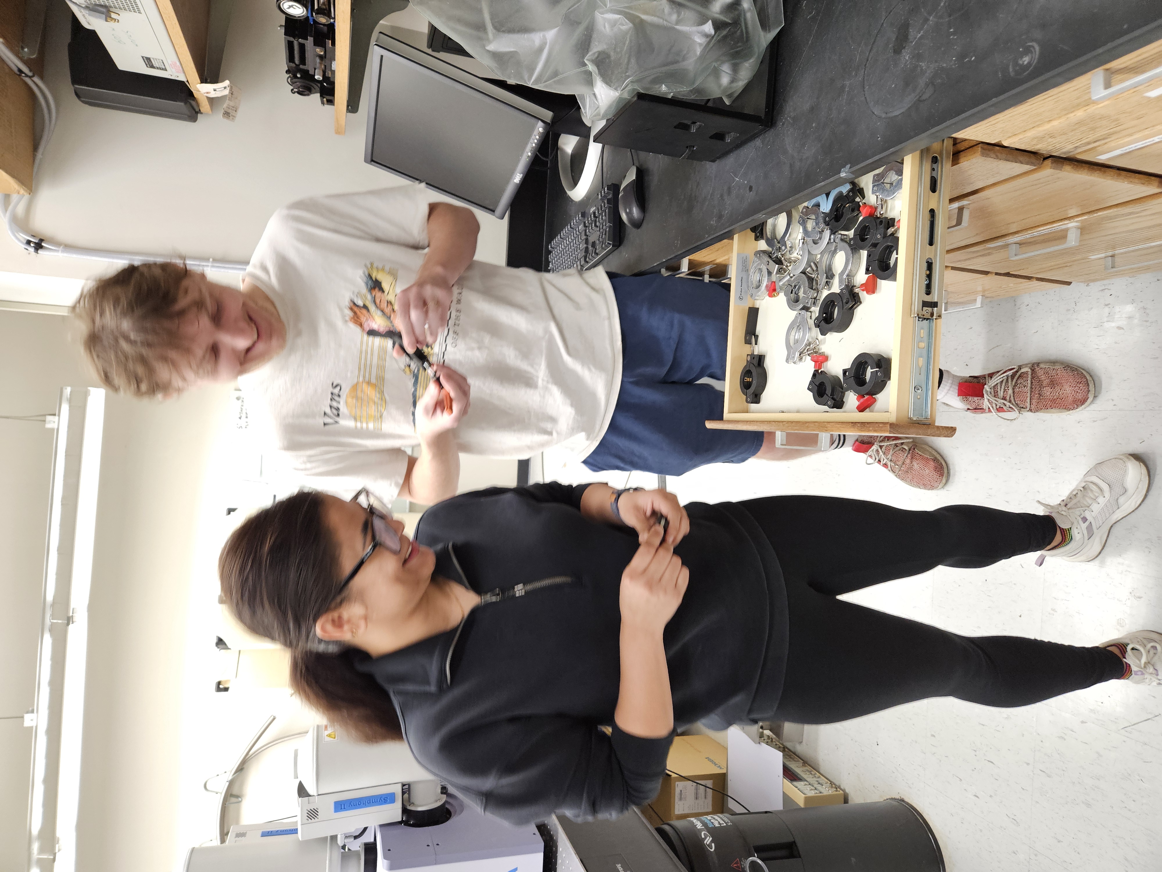 Ella, our summer lab technician, cleans and sorts our sample holders using the stereo microscope.